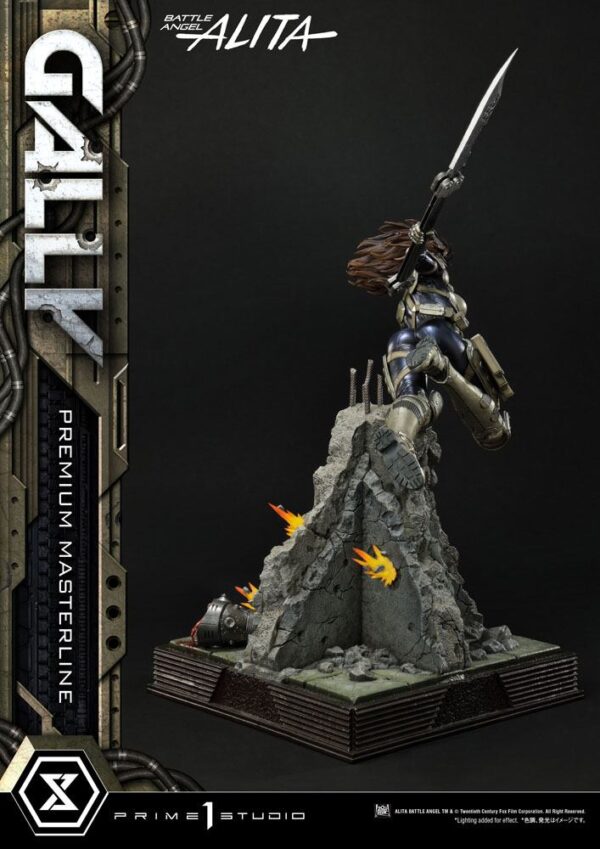 Thanks to 2019’s “Alita: Battle Angel”, Gally/Alita has enjoyed a well-deserved resurgence in everyone’s minds and hearts! Prime 1 Studio wanted to ride the rising wave of that passion by presenting Gally’s ardent fans with a statue deserving of that loyalty! We bring you an action-packed, dynamic statue steeped in the world of Battle Angel: Alita! In our high-octane, 21.7 inches tall statue, we see Gally awaken into her combat prowess as she vaults over a crumbling concrete wall. She wields her signature Damascus Blade with cold determination as she goes into full attack mode against unseen enemies devastating her position with heavy arms fire!