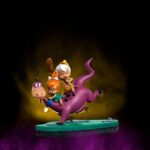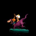 Galloping and jumping in a fun way, the lovable dinosaur dog with purple fur carries on its back the small and protected babies, having fun with them both, the small red-haired girl steering her lovely pet holding its leash, while her best friend in the rump, overflows in joy with a cute smile, closing his small eyes and raising his inseparable club. Thus, Iron Studios present the statue “Dino, Pebbles and Bamm-Bamm – The Flintstones – Art Scale 1/10”. Loyal, protective, playful, and heartwarming, Dino is a dogasaurus (a dinosaur that acts like a dog) of purple skin, the pet of the Flintstones family. Always euphoric, Dino displays nearly human emotions and loves to play with the children. Fred and Wilma’s daughter, Pebbles is cute, kind, sweet, playful, and very energetic, she spends most of the time with Bamm-Bamm, Barney and Betty’s adoptive son, a white-haired boy gifted with an incredible super-strength, which often puts him in trouble and funny situations.
