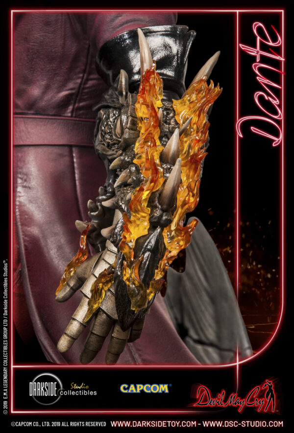 Beautiful and stylish the statue captures all the detail of the character. Smirk smile expression, classic weaponry, ifrit gauntlets, classic costume all have been developed with stunning accuracy and detail that will satisfy all DMC series fans .
