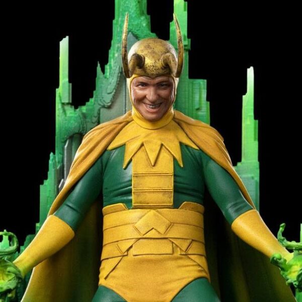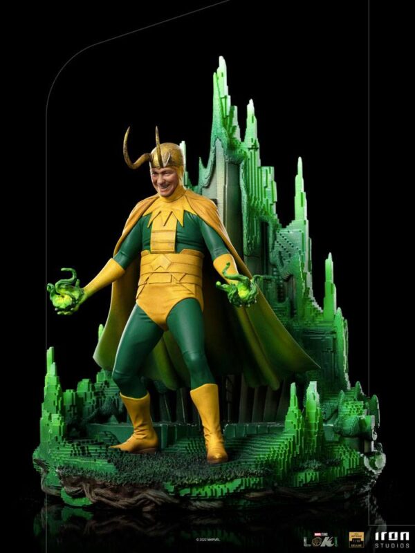 As the Asgardian sorcerer master, his magic deeds are seen by others as nearly impossible, and at the height of his abilities, with pure mystic energy hatching from the palms of his hands, the experient God of Mischief’s figure with green and yellow leotard suit, yellow cape, and golden helmet with horns, uses his power to the fullest on a pedestal on which he creates an illusion of the Asgard palaces as a trick to call the attention and deceive the trans-temporal entity guardian of the Void named Alioth. With an audacious smile on their face, Iron Studios bring the statue “Classic Loki Variant Deluxe BDS – Loki – Art Scale 1/10”, presenting Thor’s fearless adoptive brother, inspired by his classic version in the comics, presented in the Loki series from the streaming service Disney+.