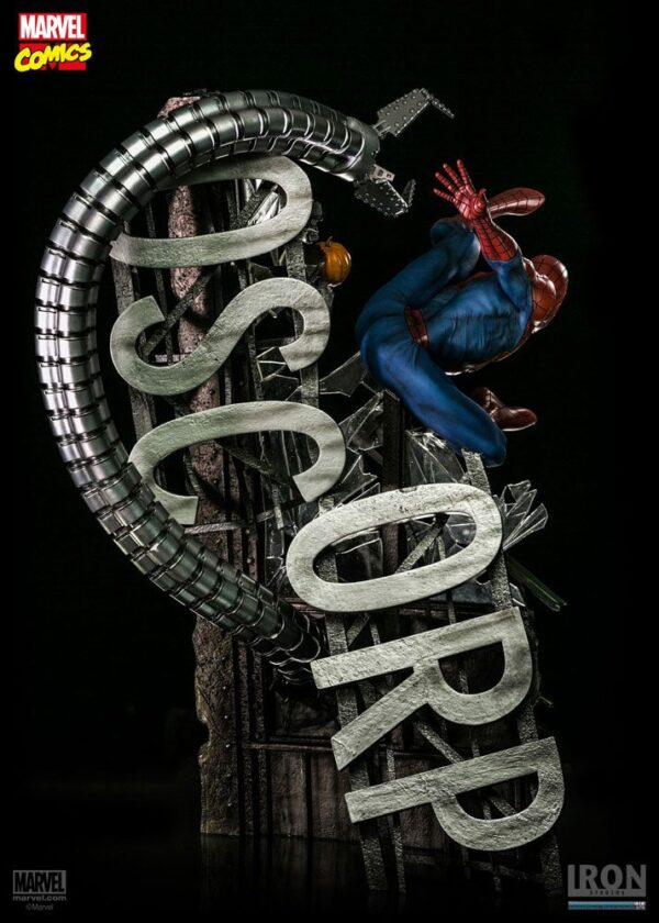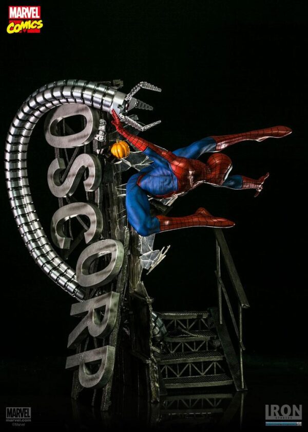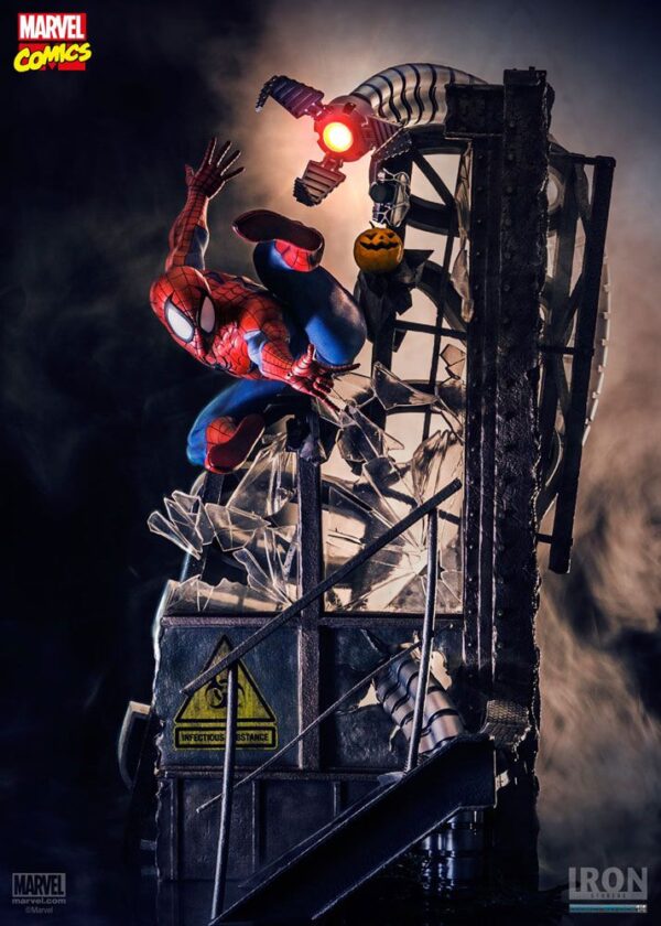Iron Studios are proud to present the Spider-Man Polystone Statue Legacy Replica. Developed from concept art by Mike Deodato Jr.. this hand-painted statue features the agile web-slinger in a dynamic pose. Seen through the window of Oscorp. Spider-Man dodges attacks from his nemeses Green Goblin and Doctor Octopus. This limited edition quarter scale diorama can be appreciated from all angles.