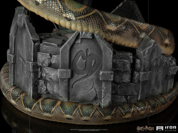 Barefoot and climbing a base formed by the remnants of concrete and stones from Hogwarts Castle, Iron Studios presents its impressive statue of “Voldemort and Nagini – Harry Potter – Legacy Replica 1/4 – Iron Studios”, Harry Potter’s most feared villain. Immortalized in a statue meticulously faithful to the wizard, played by British actor Ralph Fiennes in the movies, the saga is adapted from the literary work of JK Rowling. It is the first statue of the Harry Potter franchise to be developed on this scale by Iron Studios, which was presented firsthand at the Iron Studios Day virtual event in May 2021. As previously announced, this event will be featured monthly and will release all the news from future items.