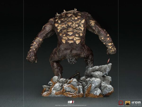 Its extraordinary strength, along with its thick skin, its back, and arms full of sharp bone plates, make it an even more effective and lethal predator. Thus, Iron Studios presents the statue “Ogre BDS Art Scale 1/10 – God of War”, the monstrous creature, adversary of the Spartan warrior Kratos and his son Atreus. The Ogre is climbing a base full of wreckage from a Nordic ruin with game references. The base is composed of the explosive jar, the arrows of Atreus inserted into it, and Kratos’ magical Leviathan ax, removable for different displays.